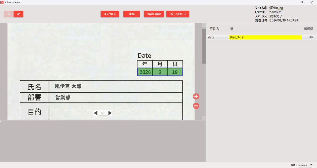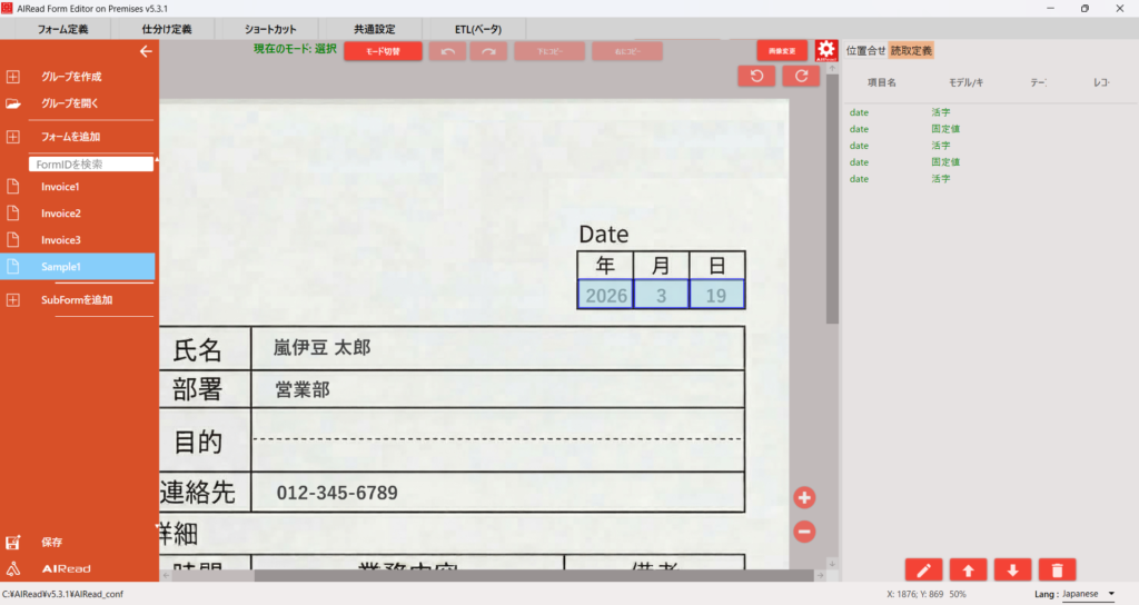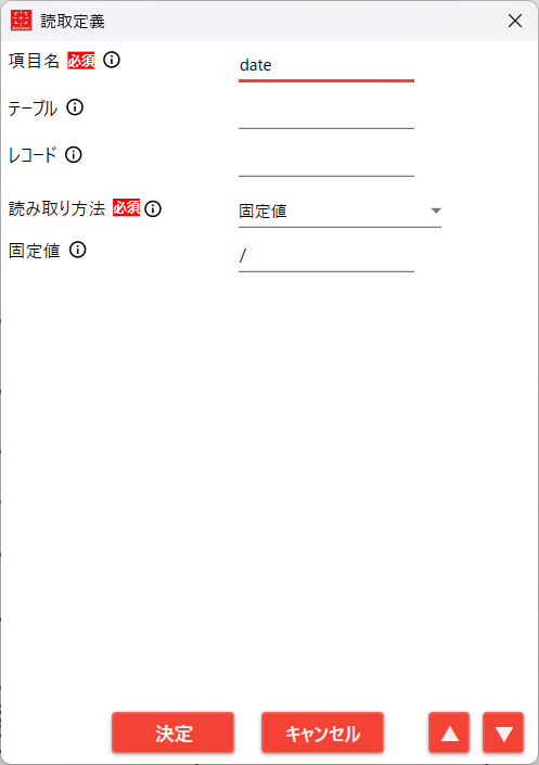 ※固定値を設定する際は任意の場所を選択して読取定義設定画面を開いてください。