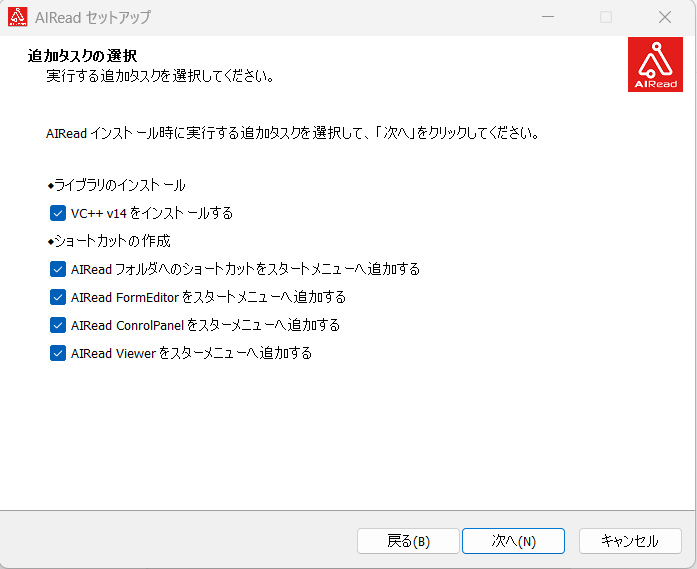 AIRead本体のインストール後に、「3.4. タスクの選択」で選択したプログラムのインストールが開始されます。