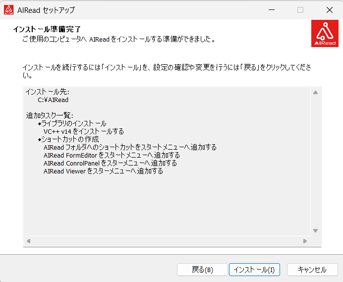 AIReadはMicrosoft Visual C++ v14ライブラリのインストールが必要です。