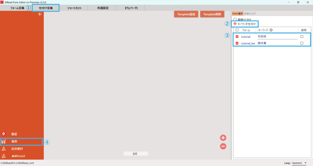 AIRead FormEditor を使用して帳票の仕分け定義の設定をします。