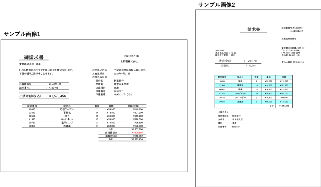今回は下の2つの読取帳票を1つの帳票定義で読み取れるように設定していきます。