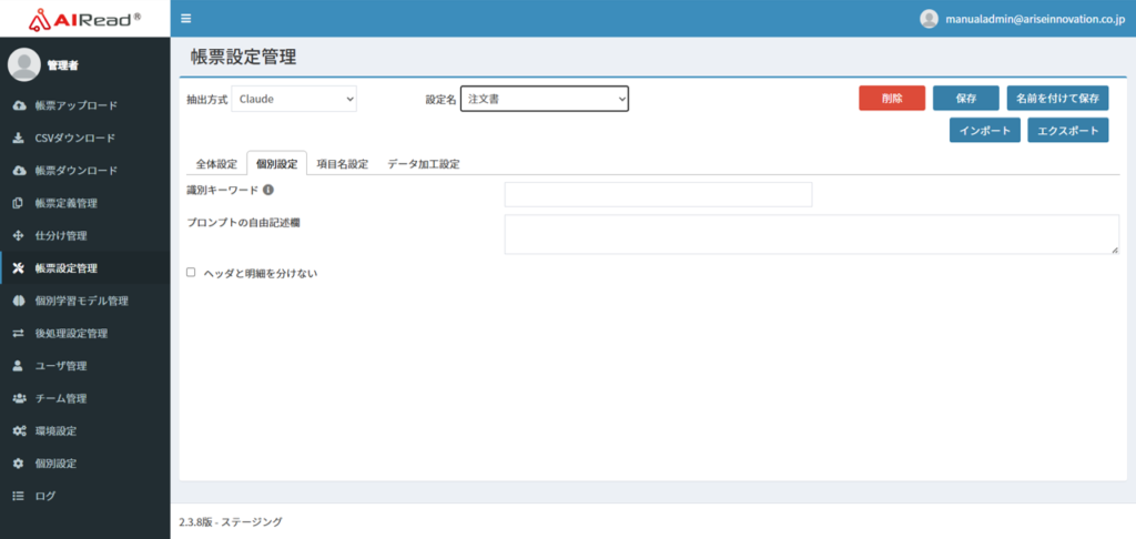 Claudeで読み取るすべての帳票に対して適用される設定です。