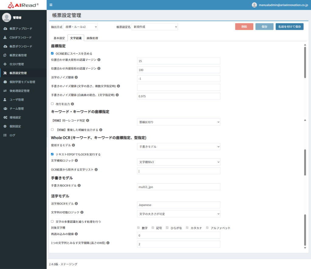 ※後処理設定はAIReadCloudClientで設定してアップロードする
